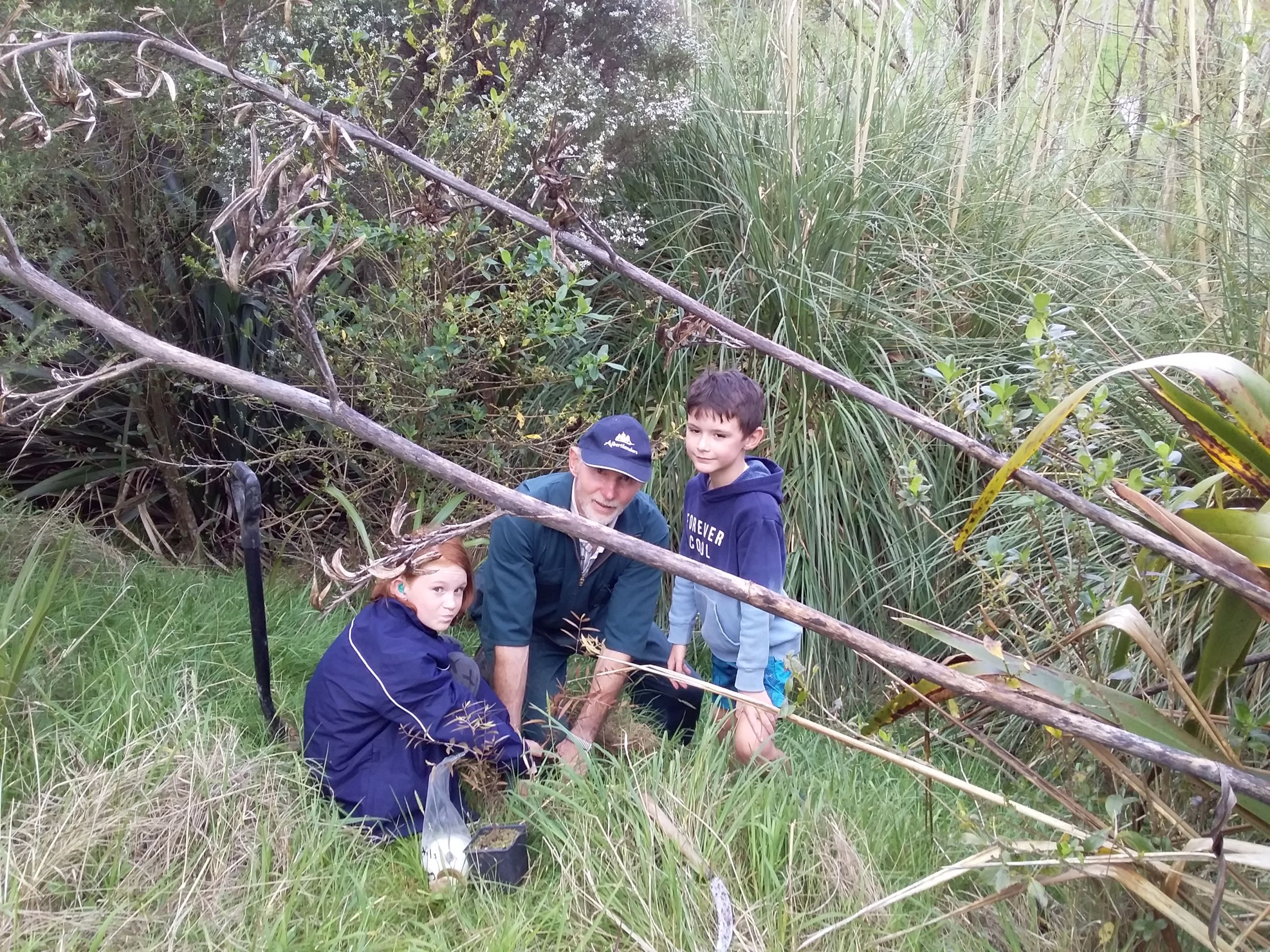Field days have been held in the past to plant up specific areas on different farms – and there’s strong involvement from local primary and secondary schools with Matakohe Primary School first cab off the rank and still going strong. Their first task was to plant along the Ruatuna Stream, on the farm once owned by former Prime Minister Gordon Coates.