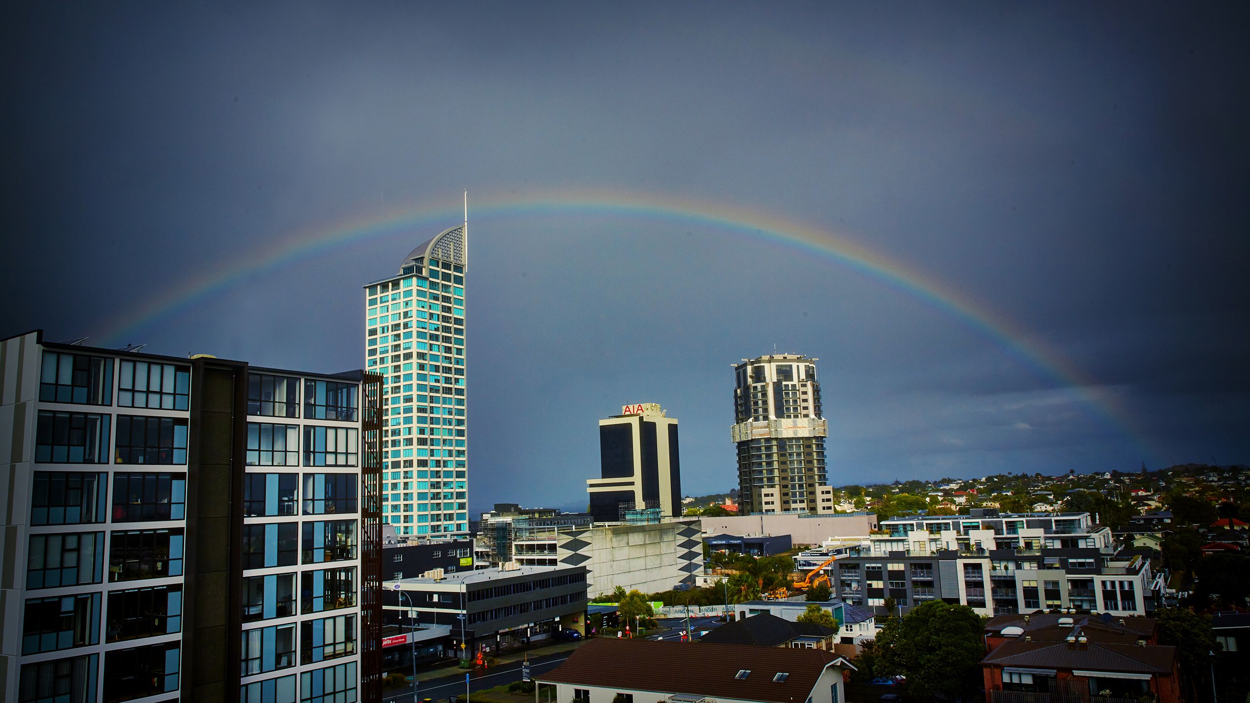 Later that afternoon there is a beautiful rainbow stretching from one side of the Auckland harbour to the other.
