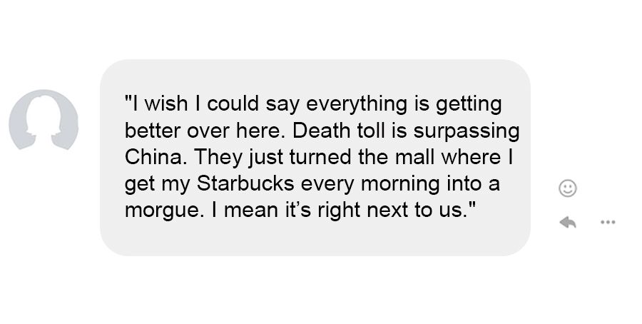 Letting friends in the US, London and here in NZ know that we unexpectedly decided to return to NZ because of dramatic escalation of cases in US. That and to care for and support my 81-year-old mother who has a very impacted respiratory system with other underlying issues.