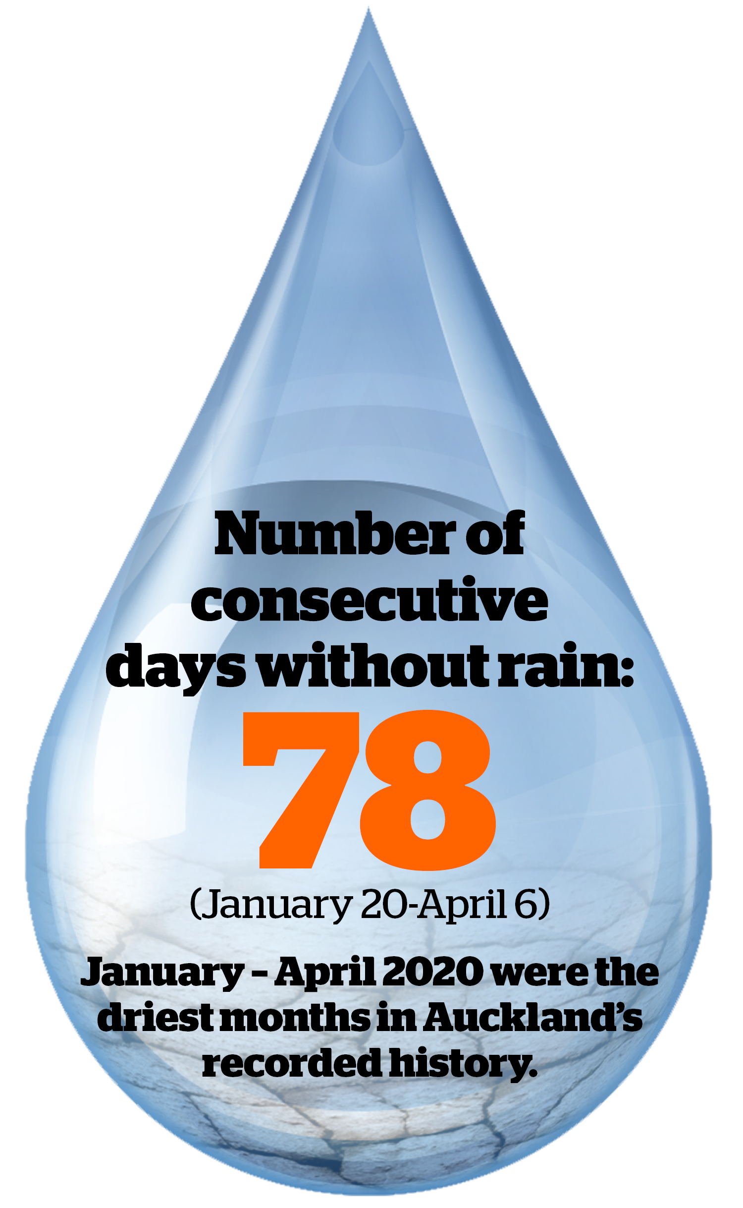 Devlin is right, in the obvious way. According to NIWA, we’ve just had the longest spell of dry weather ever recorded in Auckland: 78 days with less than 1mm of rain, from January 20 to April 6. The two neighbouring parts of the country, Waikato and the Far North, came close to the same record.