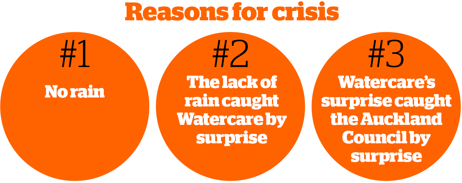 “Lack of rain,” said Margaret Devlin when the Herald talked to her this week. She’s the chair of Watercare, the council-controlled organisation (CCO) charged with managing Auckland’s water supply and planning for the city’s future needs.