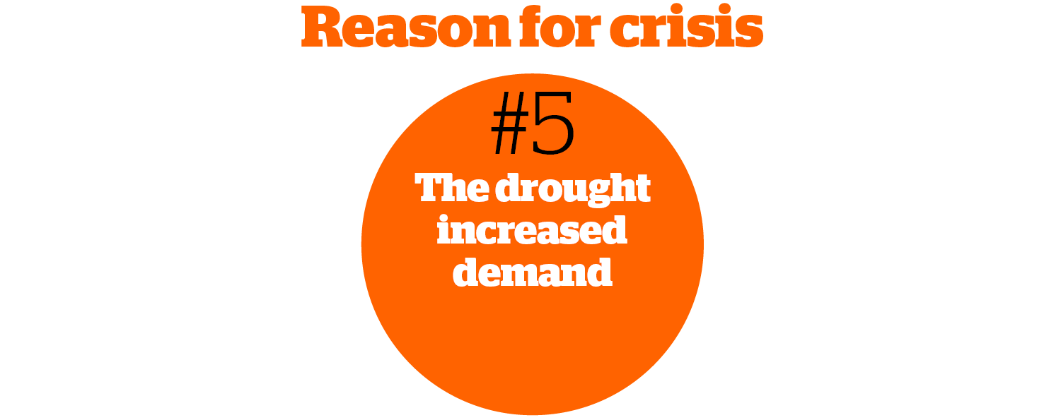 “On its own,” said Devlin, “that hasn’t really been a factor. The drought was caused by a dry winter. There has been nothing in the growth of the population to change demand levels.”