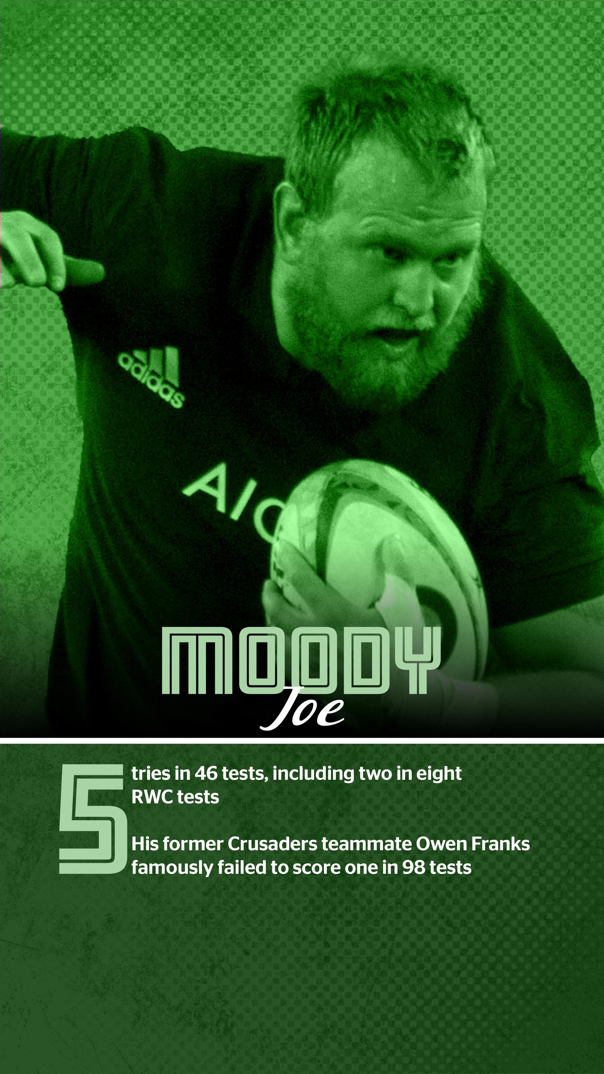 Apologies, but let’s start the low numbers with a cliché: Loosehead prop Moody is the cornerstone of both the Crusaders and All Blacks pack and a big part of why the former team has been so dominant in terms of scrummaging over the past five years. Moody, not without a sense of humour but relatively short on words, has one of the lowest profiles in the All Black pack which one imagines is just fine by him as he – another cliché alert – prefers to do his talking on the field. A former wrestler, Moody had an incredible World Cup in 2015 when he replaced the injured Wyatt Crockett and played a storming quarter-final against France. It was enough to earn starts in the semifinal and final at Twickenham and he’s been the go-to No1 ever since.