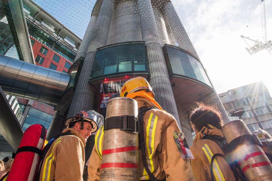 Upper section has three-floor “refuge” able to accommodate 854 people and built of non-combustible materials to provide a safe haven.