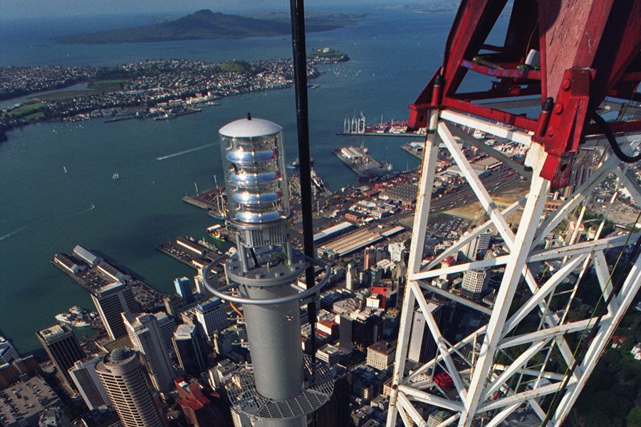 Construction nears an end on the Sky Tower. Photo / Geoff Dale
