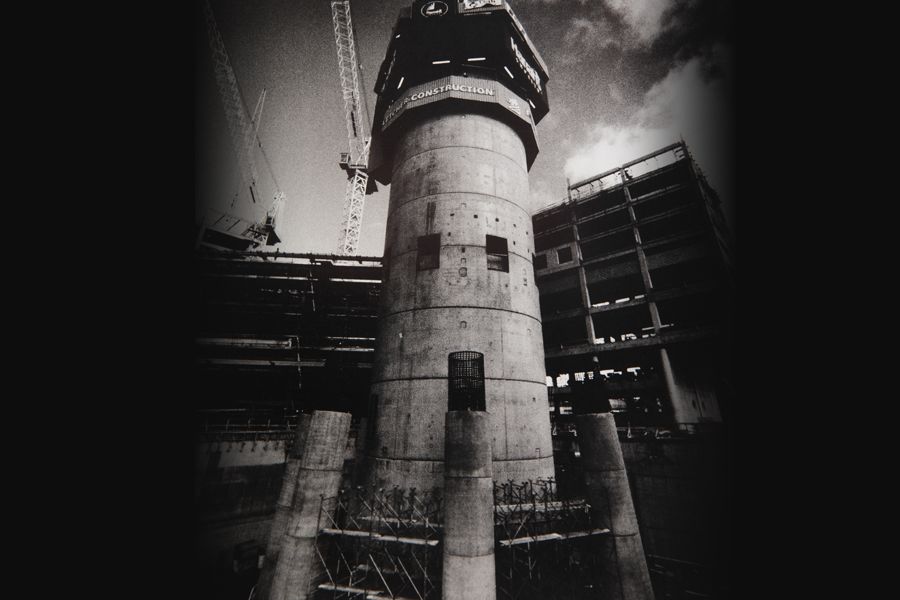 At its centre, a 12m circular steel mould was the framework for the 500mm-think shaft wall. Concrete was sent up from the street below via a diesel-power pump, poured into the mould and vibrated down its sides.