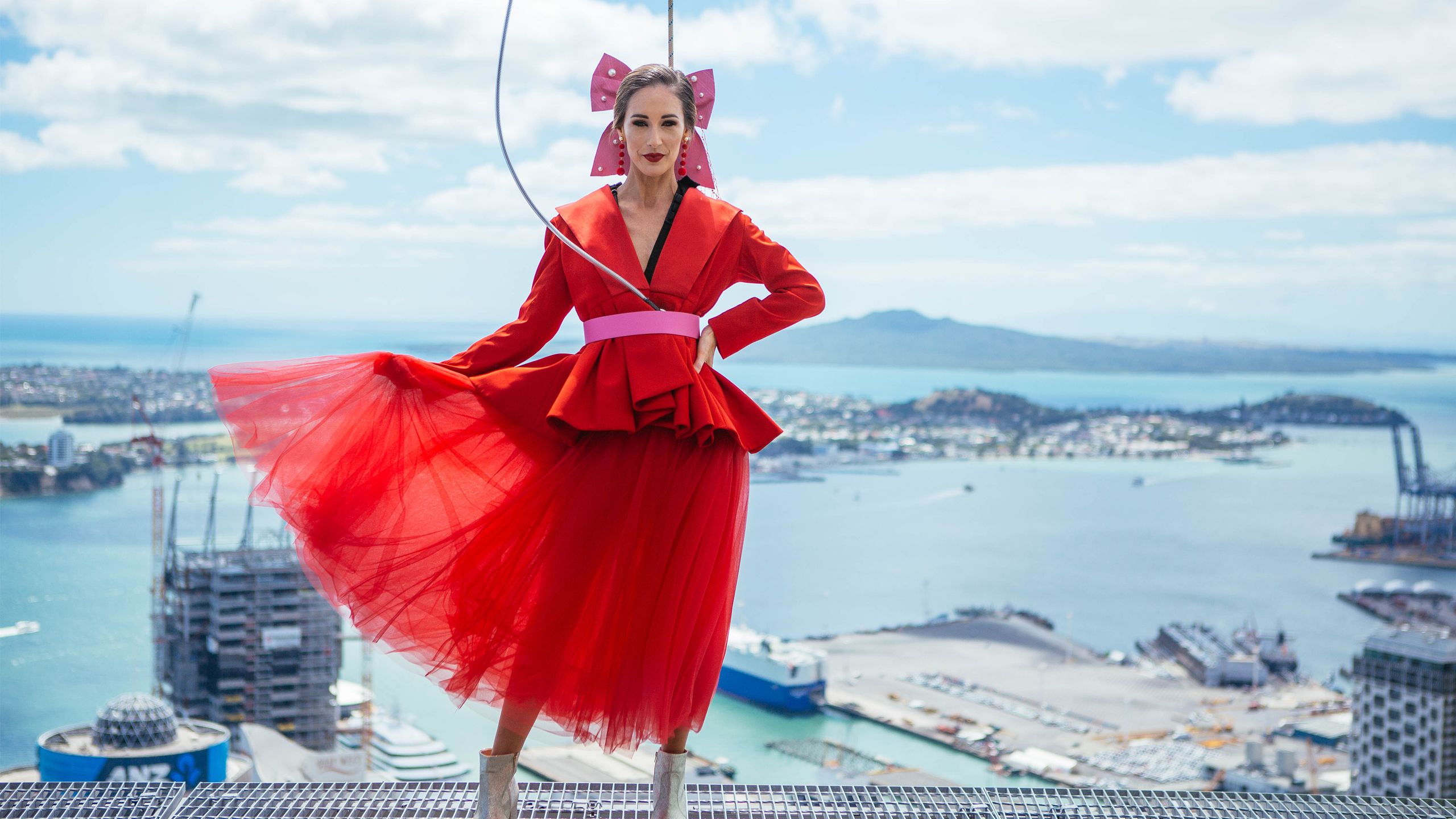 Brave models strut 192 metre tall catwalk in New Zealand first to launch Auckland Cup Week. Photo / Supplied