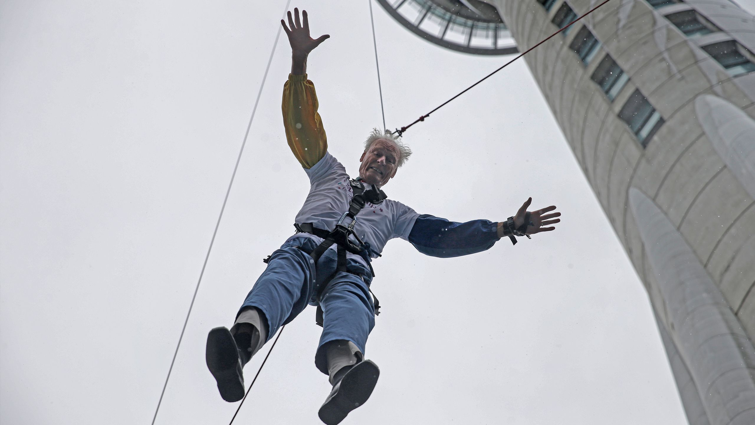Vince Harris, 90, jumps from the Auckland Sky Tower. Photo / Alex Burton