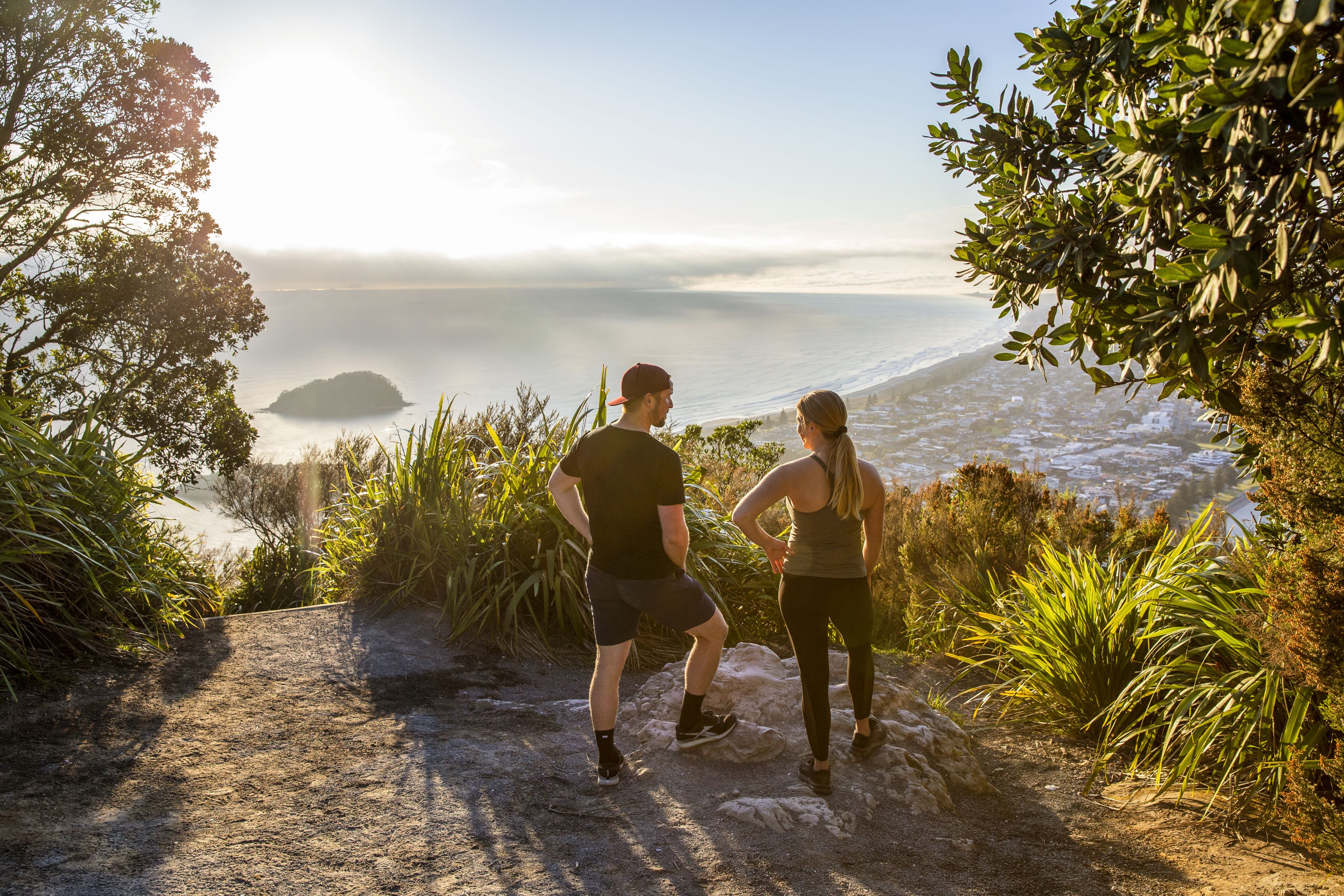 Coromandel vacationers should head for Mt Pauanui, a 30-minute climb for the fit beginner, longer if you're sensible and take time to peep through the bush to the white beach below. Great view from the trig at the top, and you can return by a less-steep route to the carpark.
