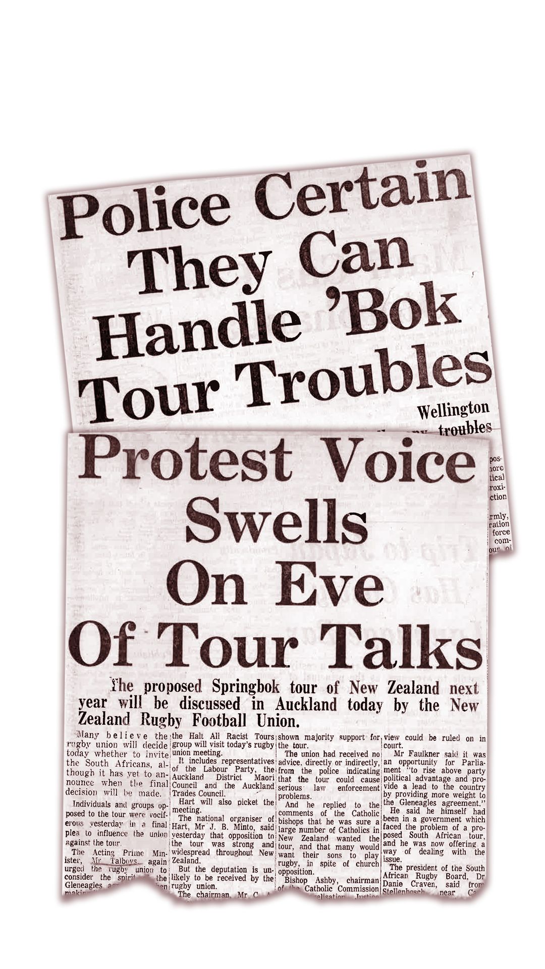 Within a month the Auckland Rugby Union, chaired by staunch pro-tour advocate Ron Don, had gone public with its support of a tour. At the same time nationwide protests hit the streets around New Zealand.